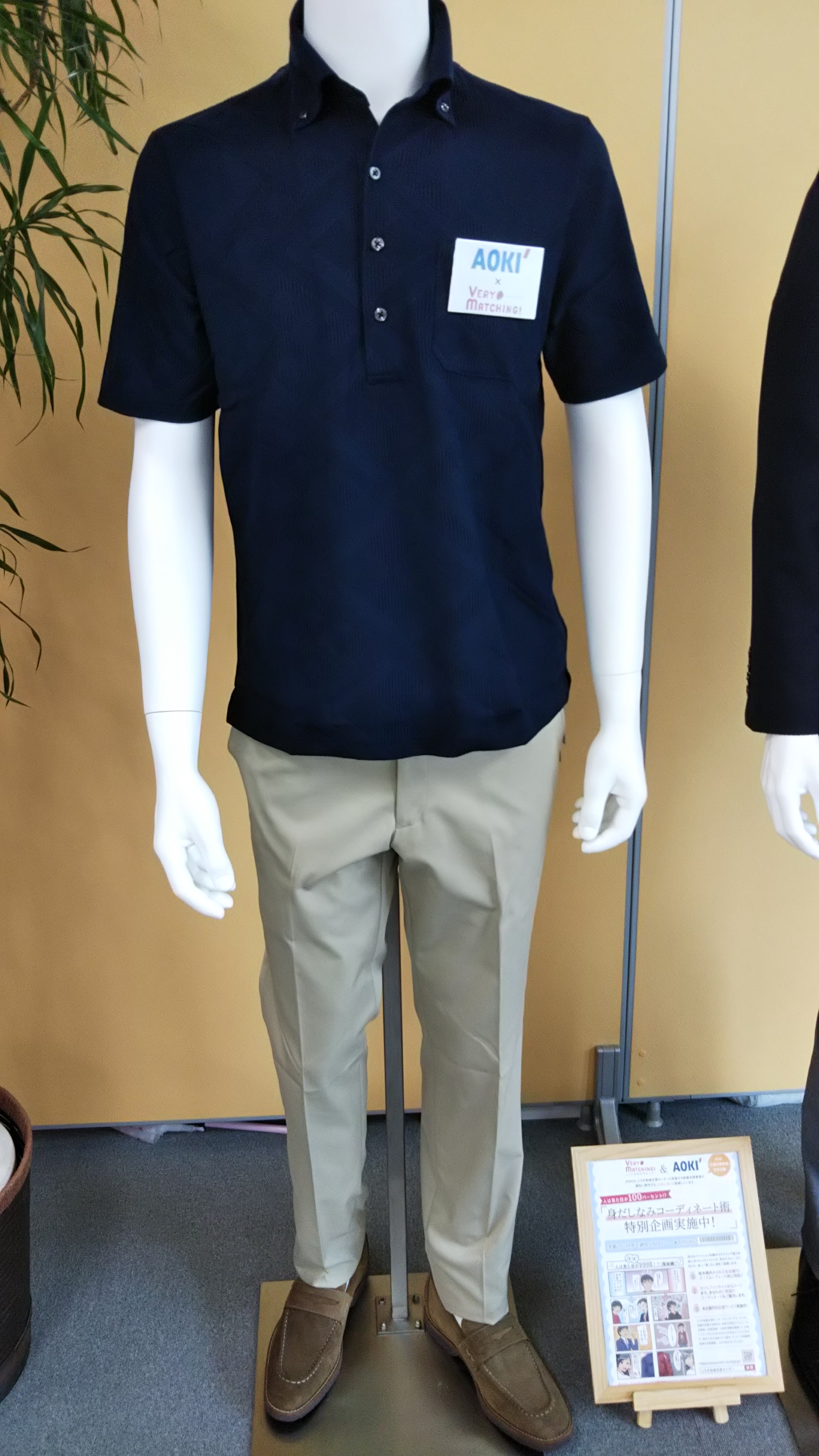 ネイビーのポロシャツは、折柄による上質感と清潔感を演出し、キラリと光る襟元・胸元のボタンがさらにキチンとした印象を醸し出します。