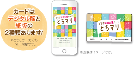 とちぎ結婚応援カード「とちマリ」は、新婚夫婦や2年以内に結婚を予定しているカップルを対象に、事業に協賛している店舗・施設でお得な優待サービスが受けられるカードです。