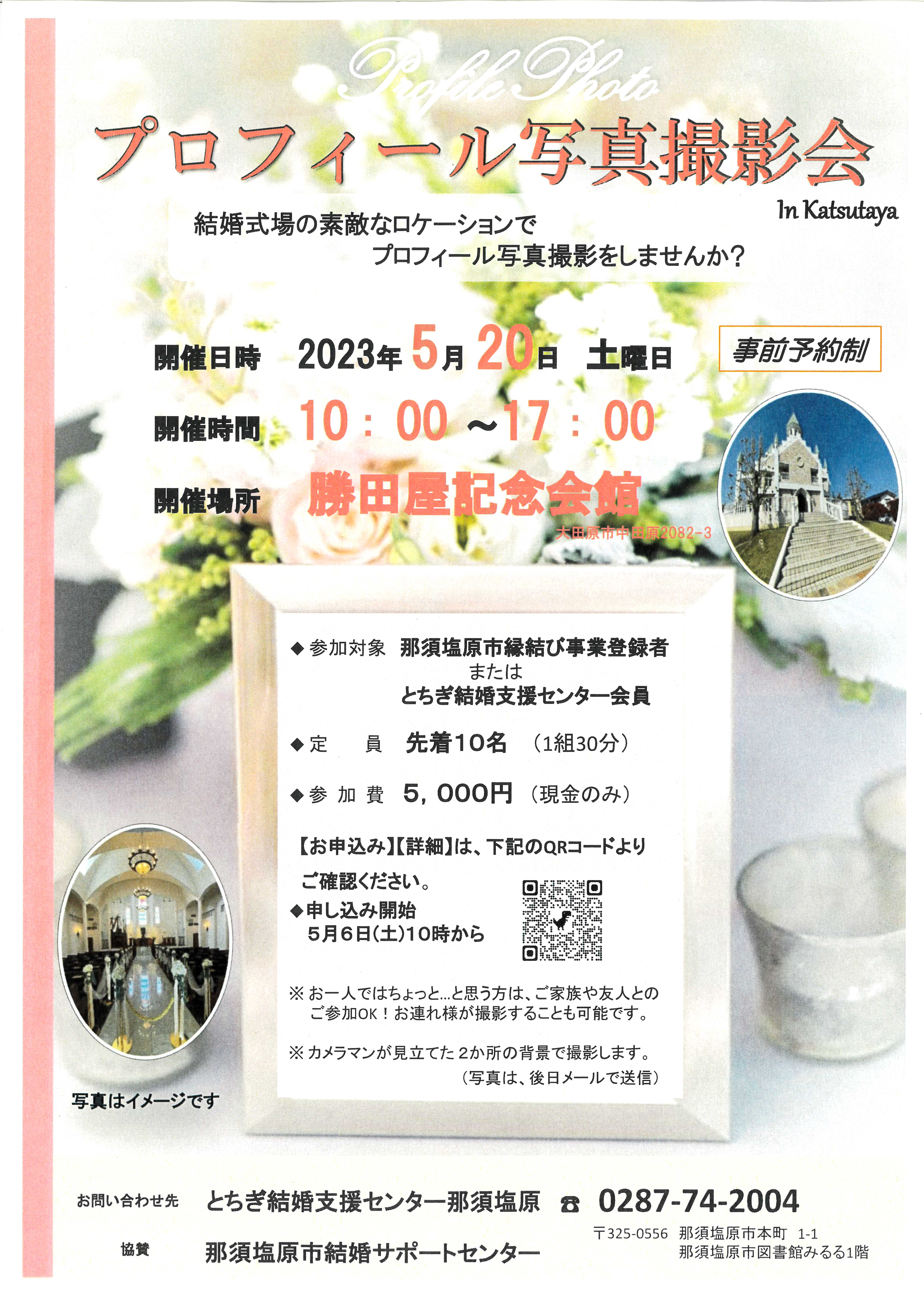 大田原市の結婚式場「勝田屋記念会館」を全館貸し切って、プロのカメラマンによるプロフィール写真撮影会を行います!