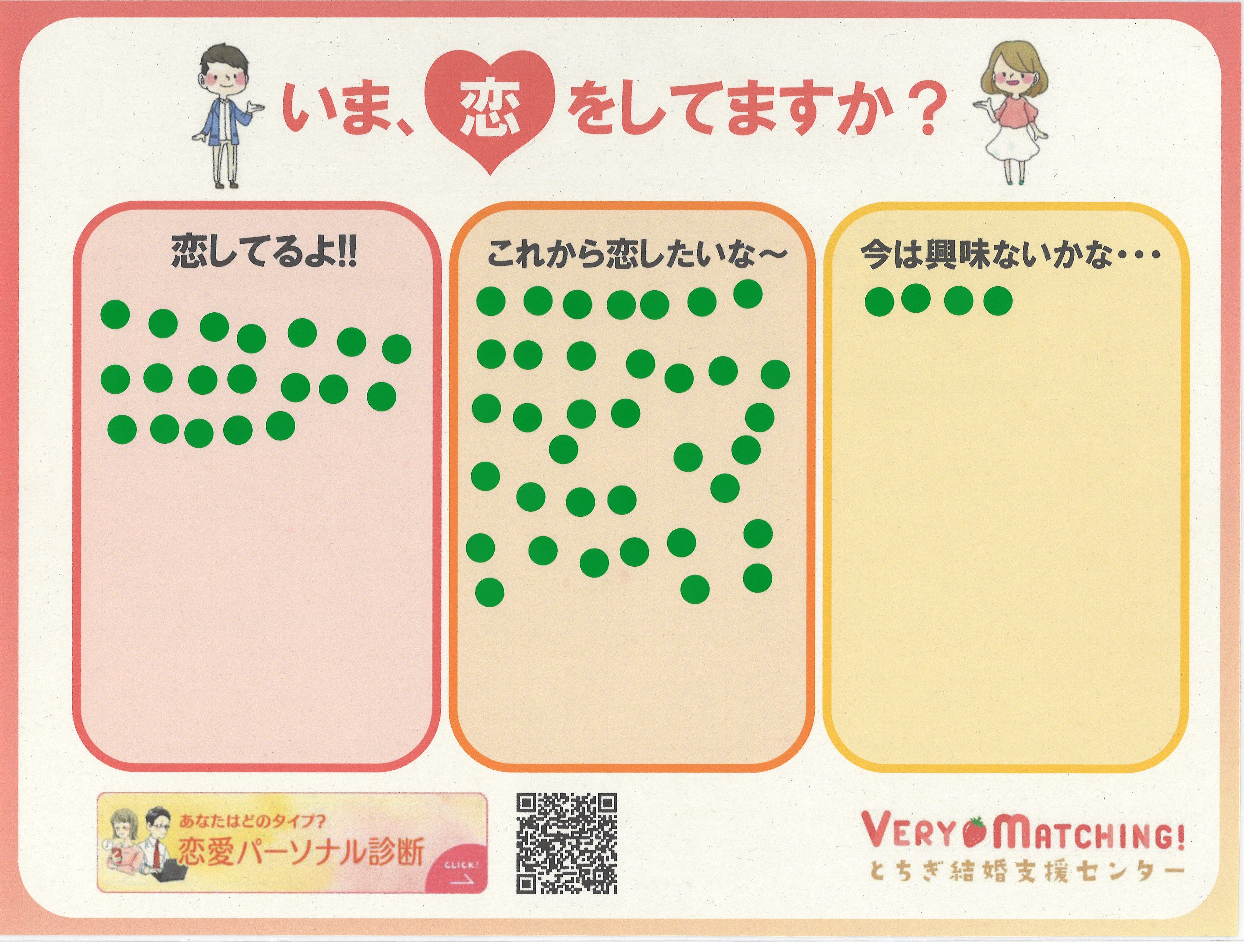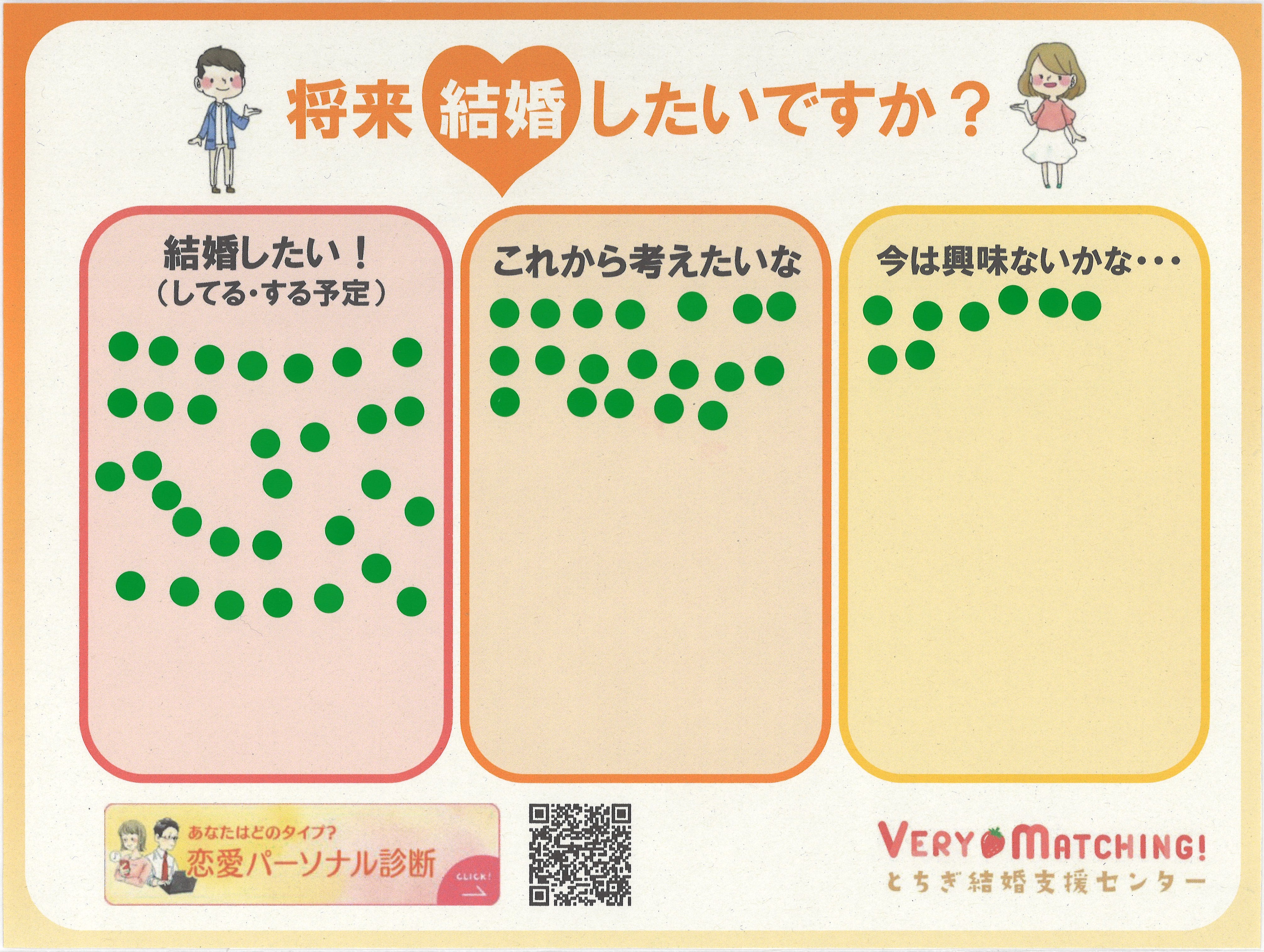 来場者の皆様には「将来結婚したいですか?」と「いま恋をしてますか?」のアンケートにご協力いただきました。