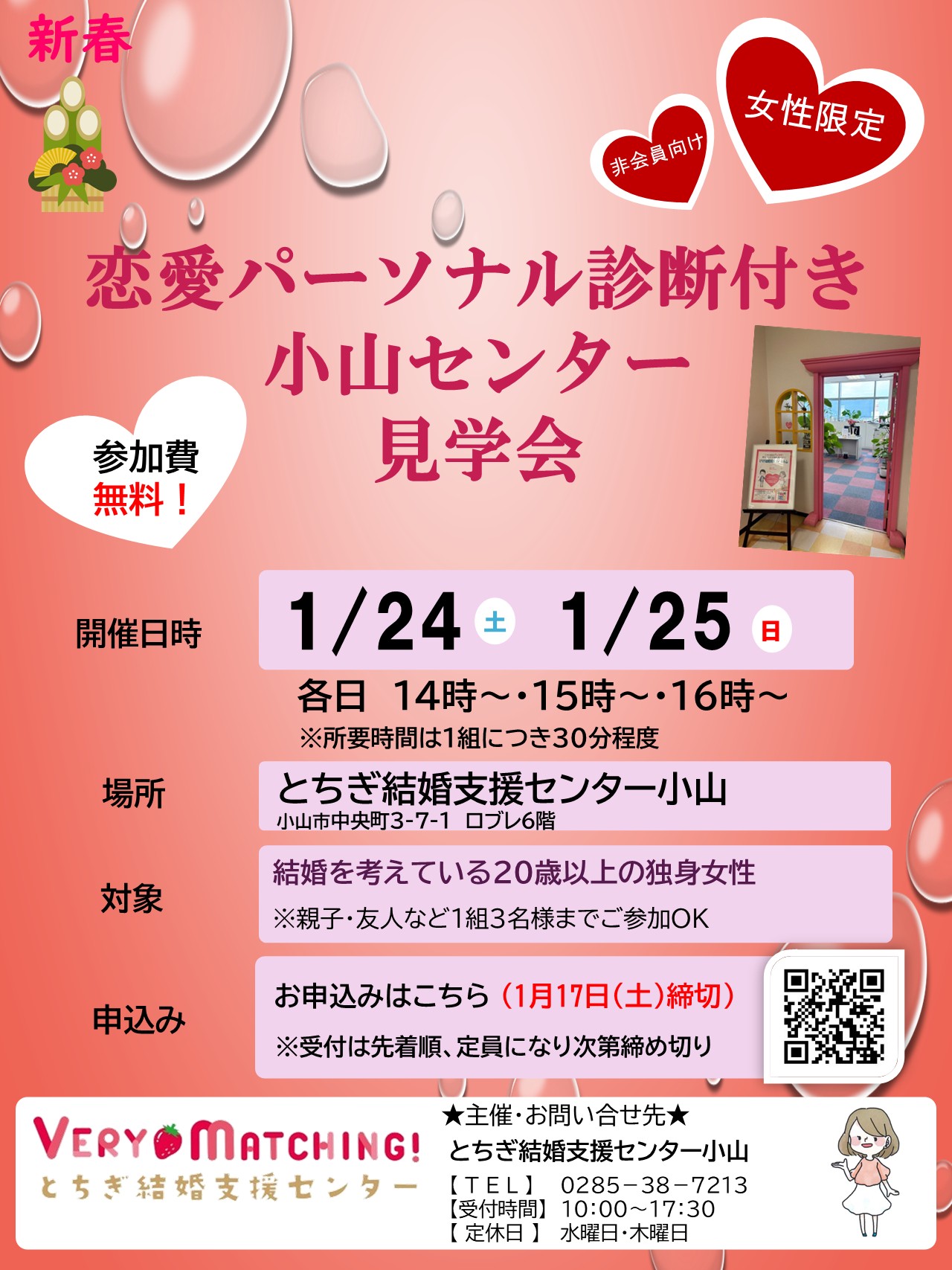 終了:【女性限定】恋愛パーソナル診断付き!とちぎ結婚支援センター小山 見学会