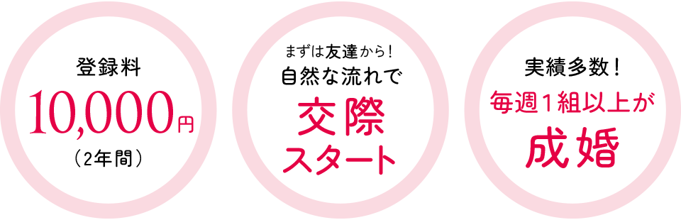 お引き合わせ後、お二人が同意すれば、まずはプレ交際(お友達期間)に進みます。最大60日の間に、お互いに交際意思がある場合は交際スタート!交際中も丁寧にフォローします。